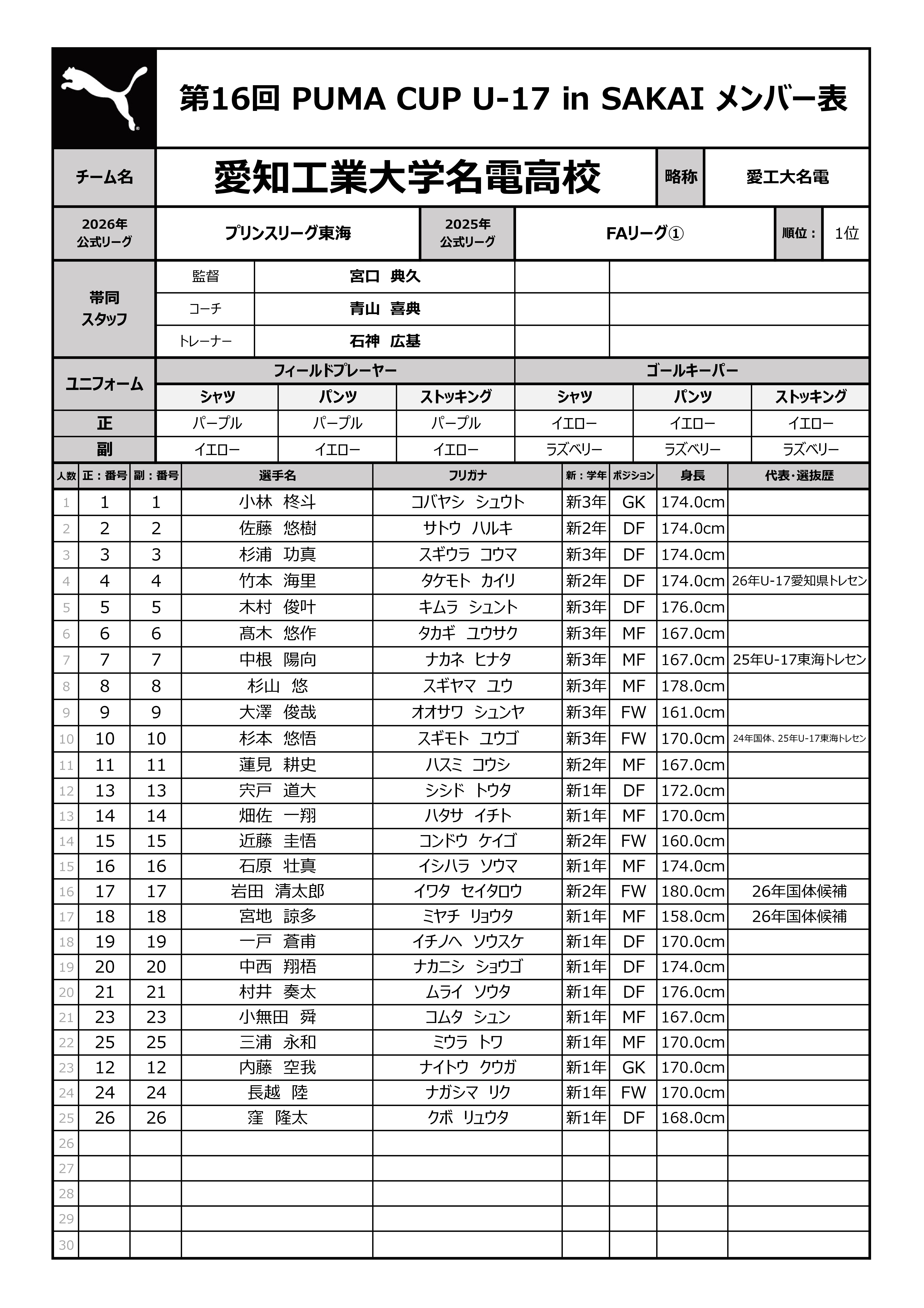 第16回 PUMA CUP U-17 in SAKAI 2026