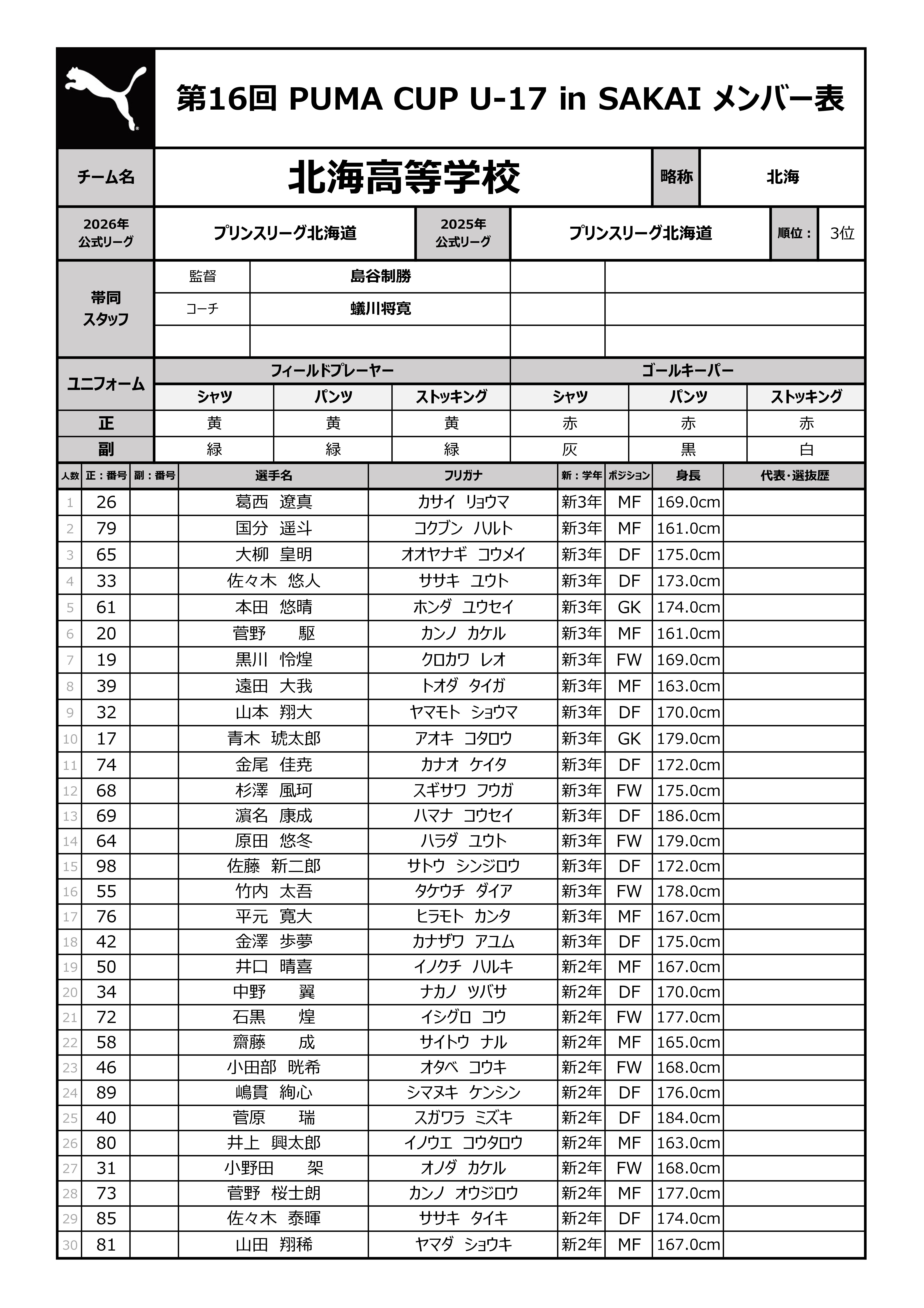 第16回 PUMA CUP U-17 in SAKAI 2026